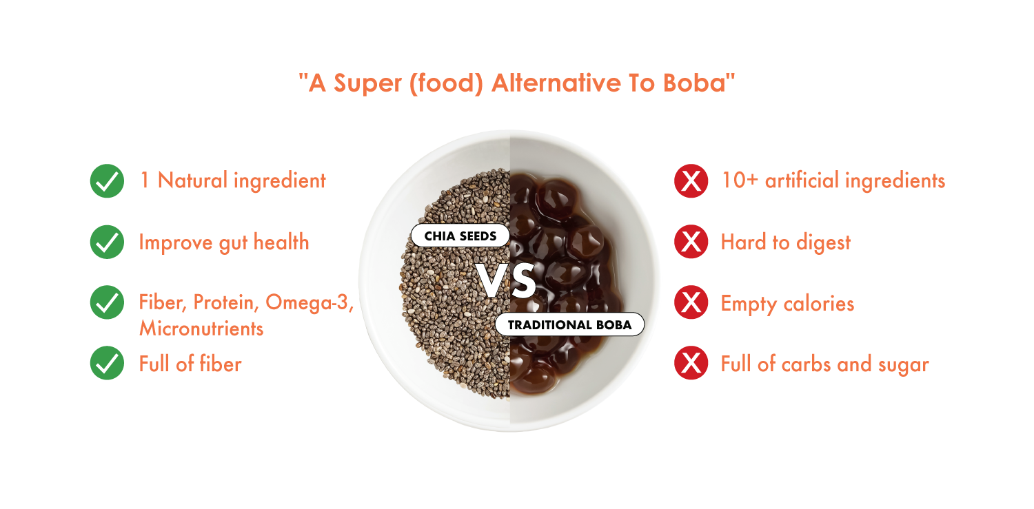 Brighten your day with a whole new Bubble Tea experience! We've crafted the most flavorful Superfood Lattes, topped with a crunchy twist of chia seeds.
