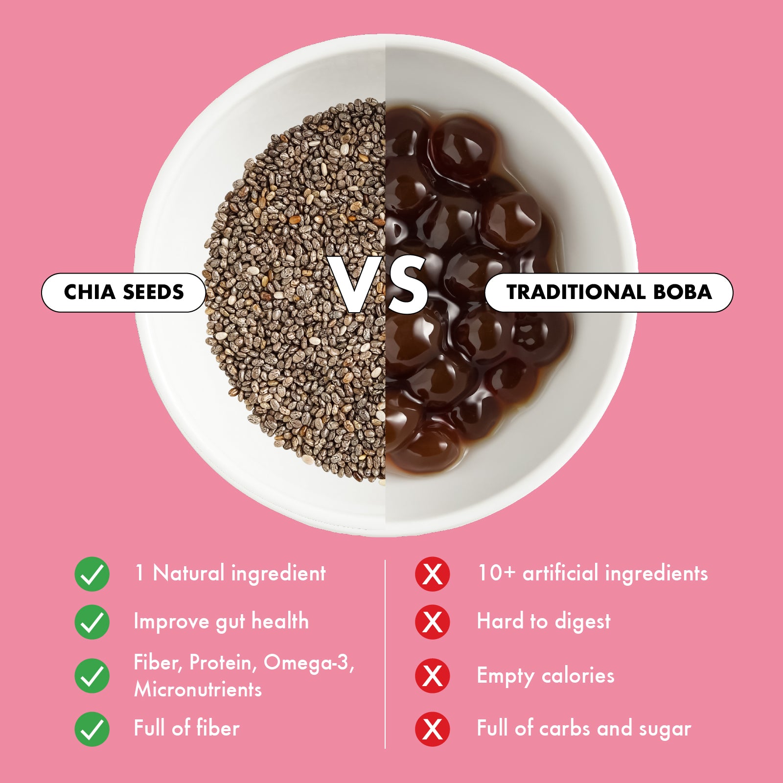 • "My Chia Bubble Tea tastes absolutely amazing! I never imagined that chia seed could be a healthy alternative to tapioca. It's such a creative twist!"