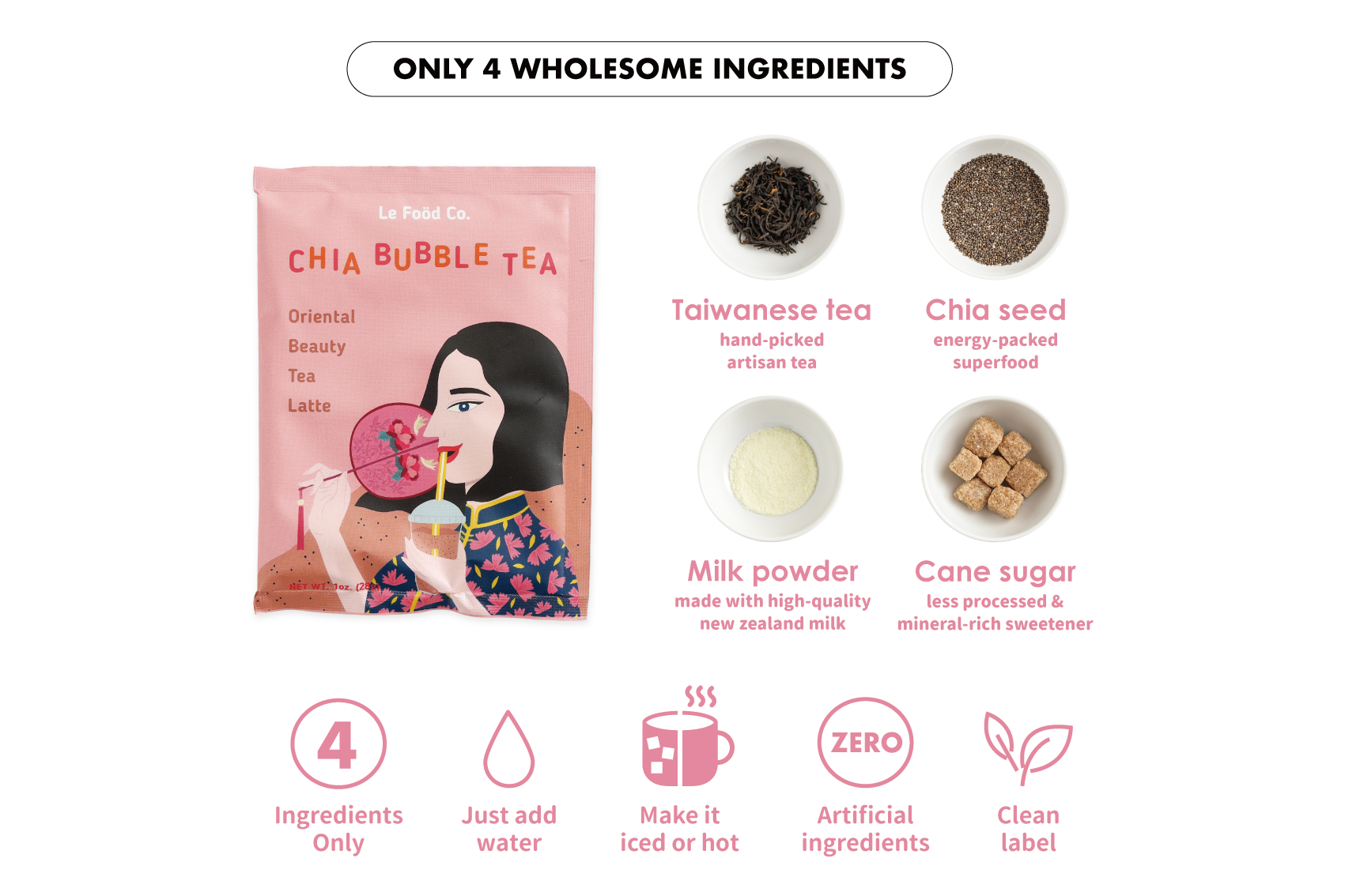 milk powder, cane sugar, chia seeds, taiwanese tea